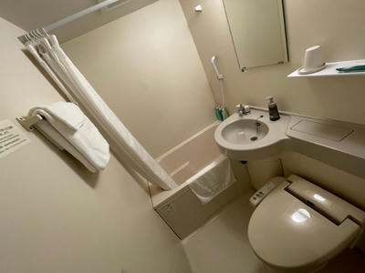 とにかく必要最低限設備。洗面所のコップも設置していないので、フロントの紙コップを使用。