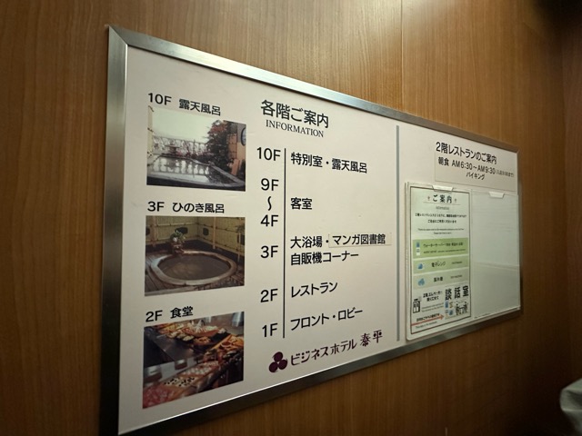 2階に大浴場あり。6時〜9時、15時〜24時。サウナもあるそう。