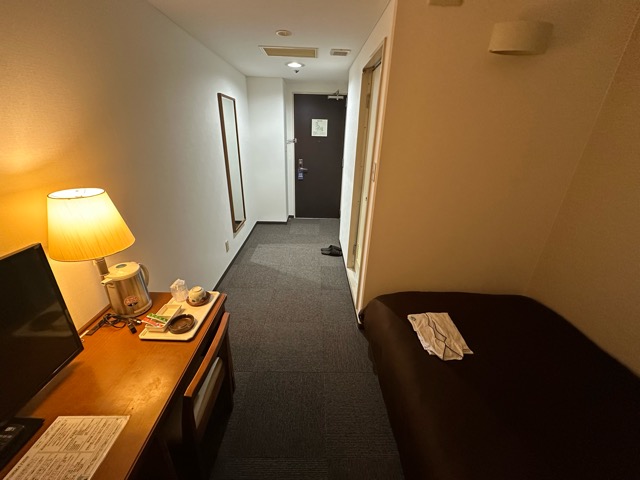 部屋に入った廊下的な部分は広かったけどベッドはそうでもなかった。