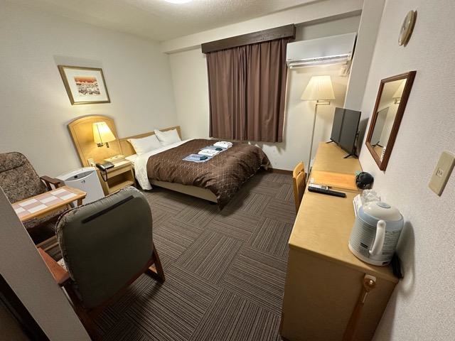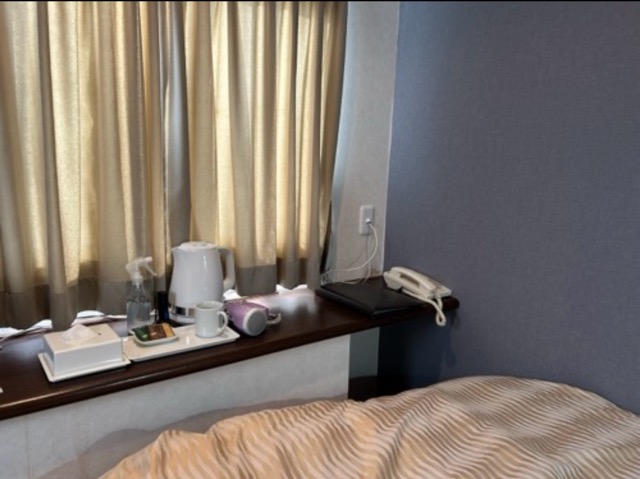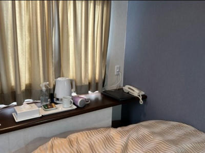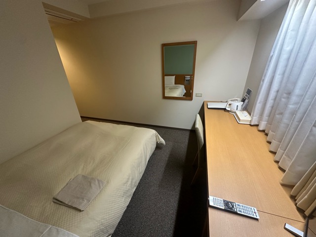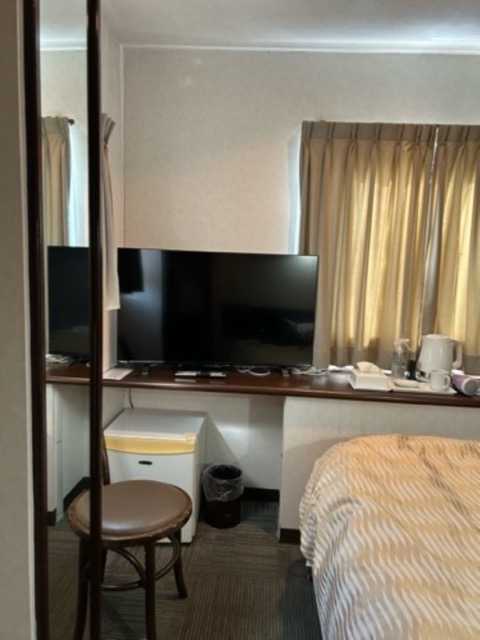 お部屋が正方形?なのか、物の配置が変わっていた。ベッド大きい。デスクが暗いのが残念。