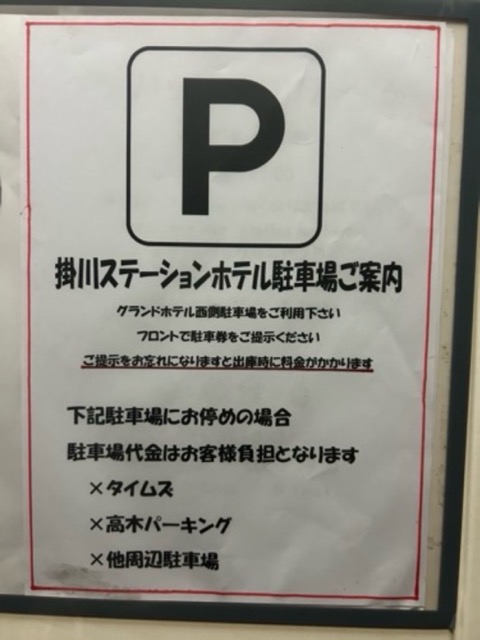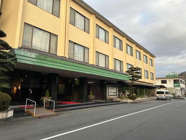 ホテル前の駐車場、縁石があって停めにくい。今回は座のハイエースだったし、少し隣に空きがあったからよかったけど、グランドキャビンだと大変だろう。
