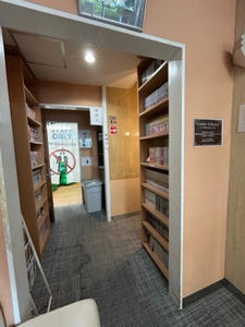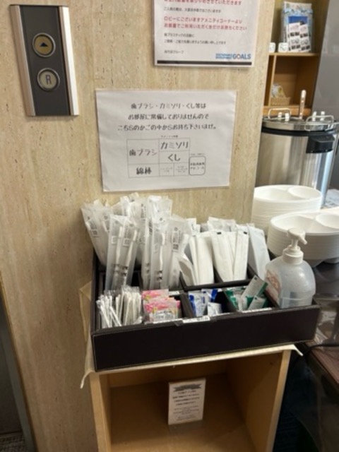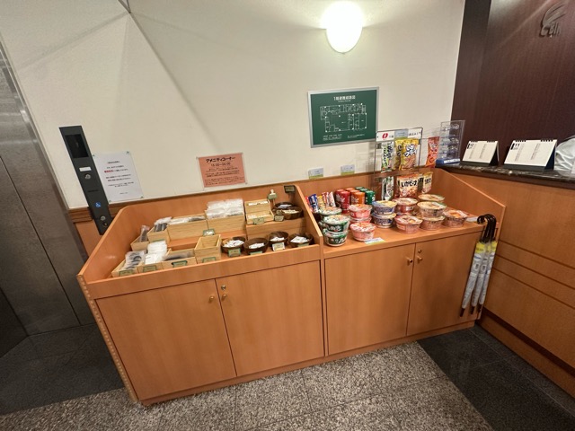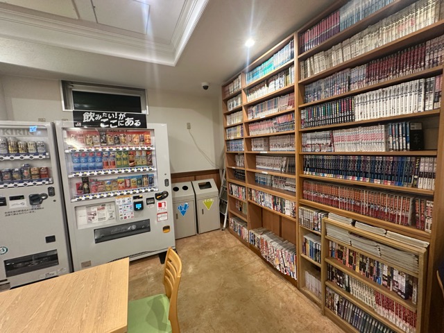 アメニティはロビーでもらう。ラインナップ充実。漫画もある。