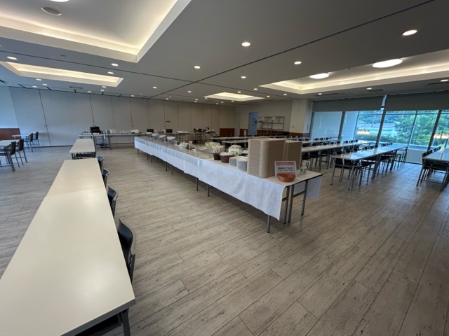 これまた広い会場で、場所によって海も見える。おかずの種類は多くないけど、淡路島の牛乳などあり。